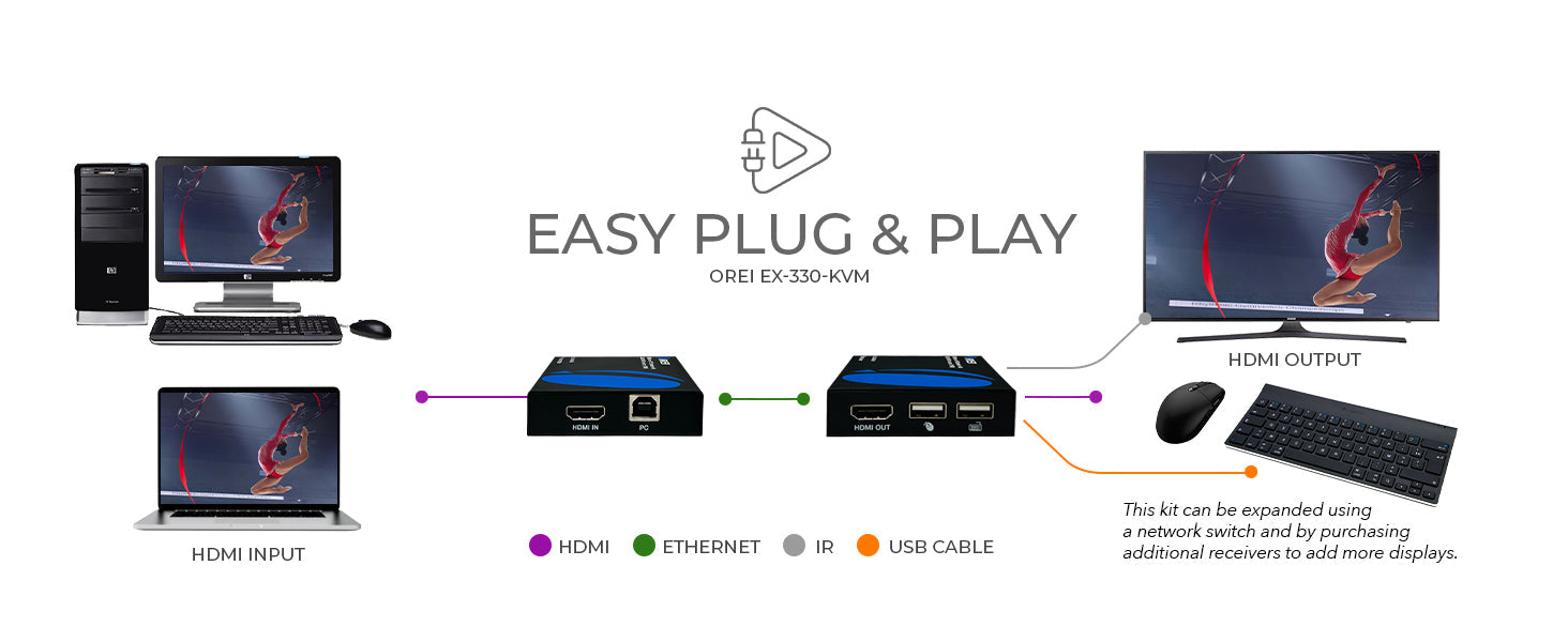 Over IP KVM and HDMI extender over ethernet up to 492 feet