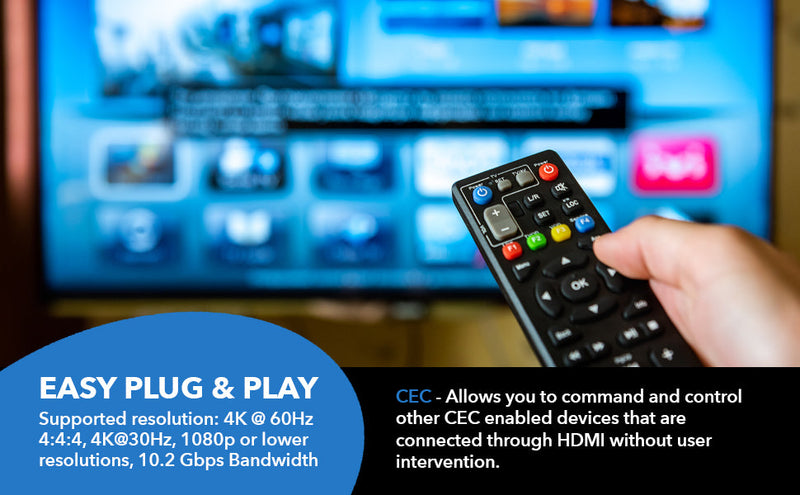 With bi-directional IR, RS-232, and CEC passthrough, you can control your source or display from either end of the HDMI extension. Bi-directional Power over Cable (PoC) means only one power adapter is required, reducing cable clutter and simplifying installation. This plug-and-play HDMI extender 4K kit is easy to set up with no software or drivers needed, delivering dependable performance straight out of the box.