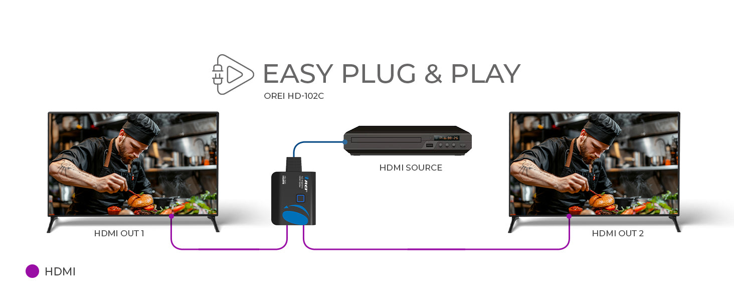 OREI HD-102C: HDMI SPLITTER 1 INPUT 2 OUTPUT 4K@30HZ WITH HDMI MALE CONNECTOR