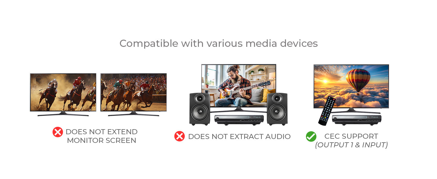 CEC Support (Output 1 only) – Enables centralized control of connected devices using a single remote.