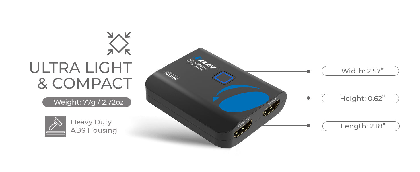 Built with a male HDMI connector for direct connection to your source device, the HD-102C offers a clutter-free setup—great for travel or clean installations. Its compact and durable ABS plastic housing makes it a sturdy yet portable splitter adapter HDMI that integrates effortlessly into any dual monitor splitter configuration.