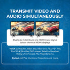 The HD-102C supports both uncompressed LPCM and compressed formats such as DTS and Dolby Digital, including DTS-HD Master Audio and Dolby TrueHD—delivering rich audio alongside crystal-clear video. Plus, CEC pass-through on Output 1 lets you control connected devices with a single remote, adding convenience to your screen splitter for laptop or home theater setup.