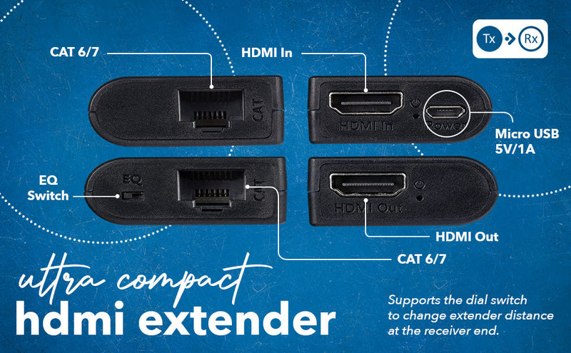 - Signal Extension up to 130 ft (40 m) – Transmits HDMI signals over a single CAT6/7 cable.