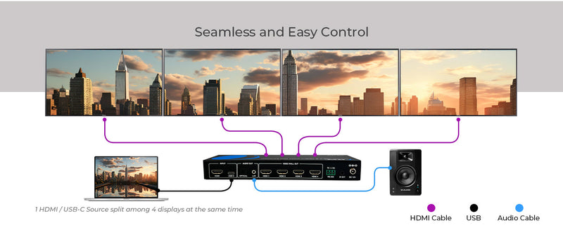 4K 1-In-4-Out USB-C & HDMI™ Video Wall Controller (Audio Extract)-UHD-14VW