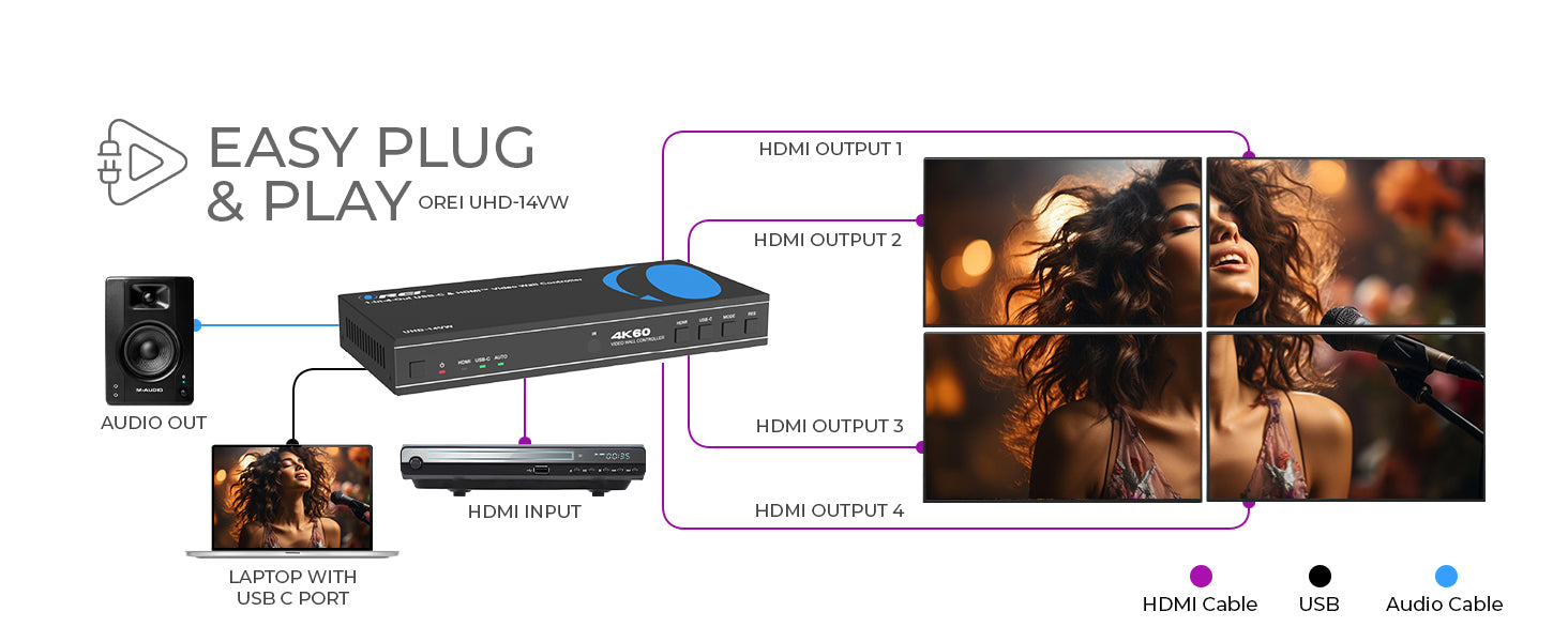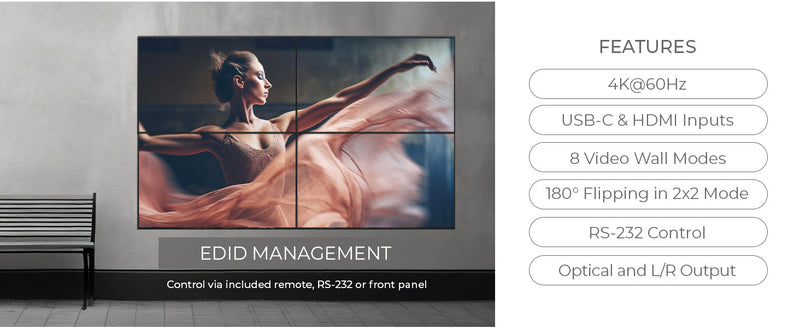UHD-14VW: HDMI 2x2 Video Wall Controller with UBS-C input