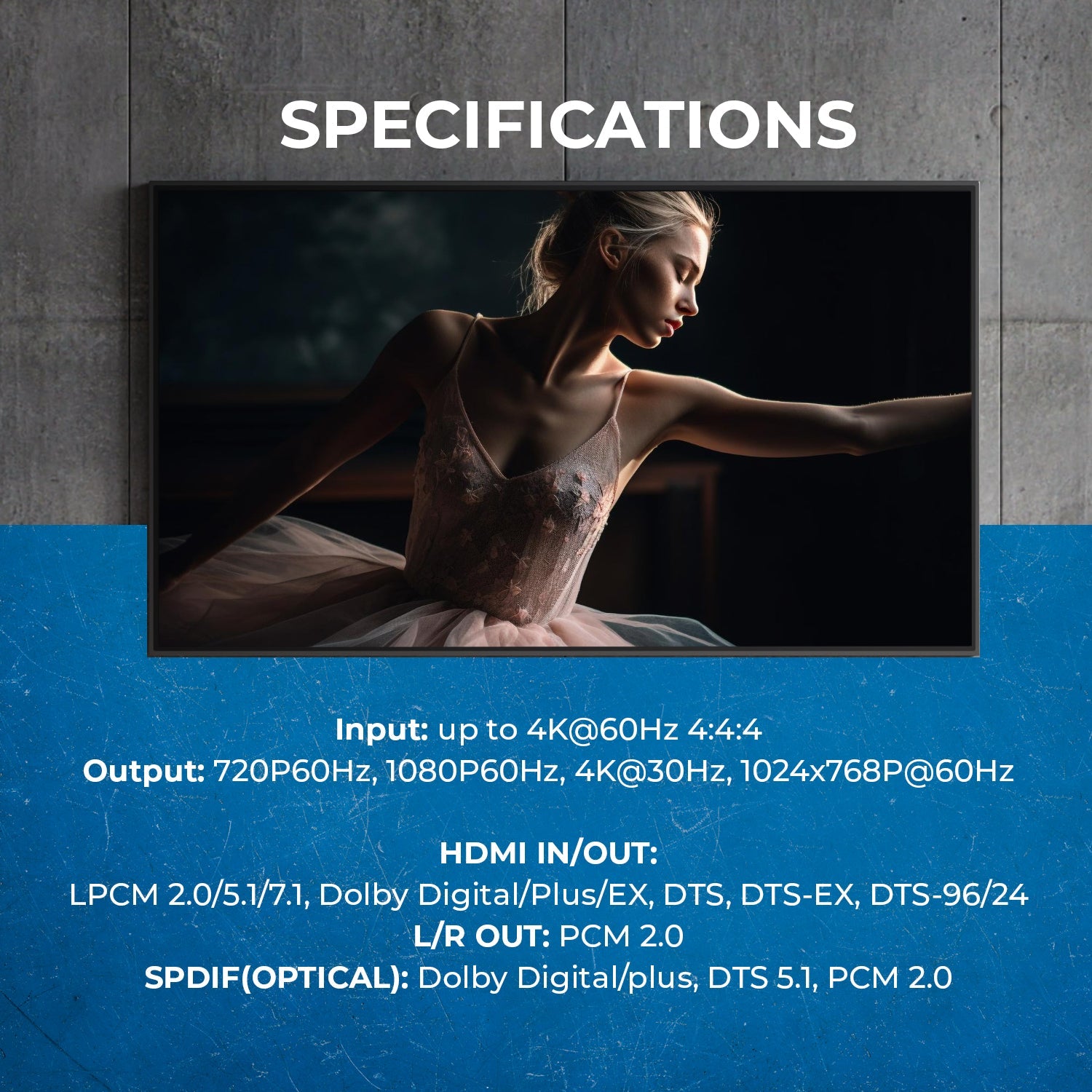 Audio Extraction – Provides Optical and 3.5mm stereo outputs for flexible sound integration.