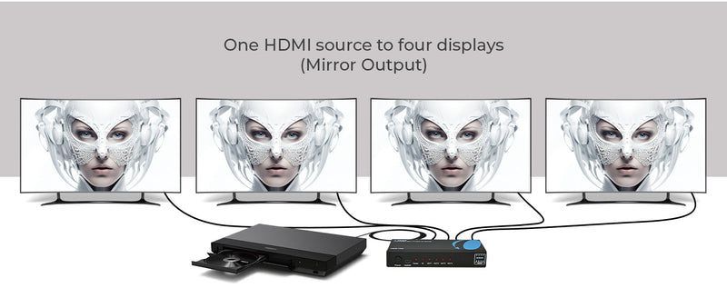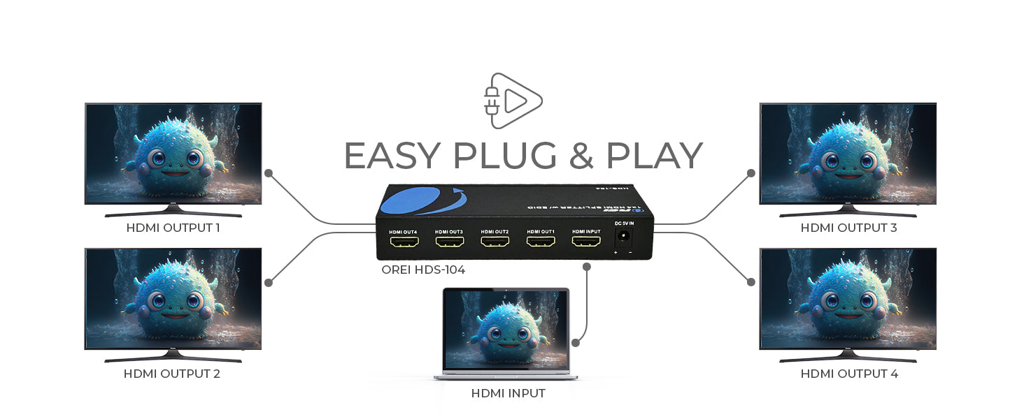 The OREI HDS-104 ensures seamless compatibility with modern HDMI displays, supporting HDCP 2.3 and DVI 1.0 standards. Whether you're using it for laptop screen splitter setups or running multiple monitors, it reliably distributes a single HDMI source to four displays simultaneously, maintaining excellent signal quality.