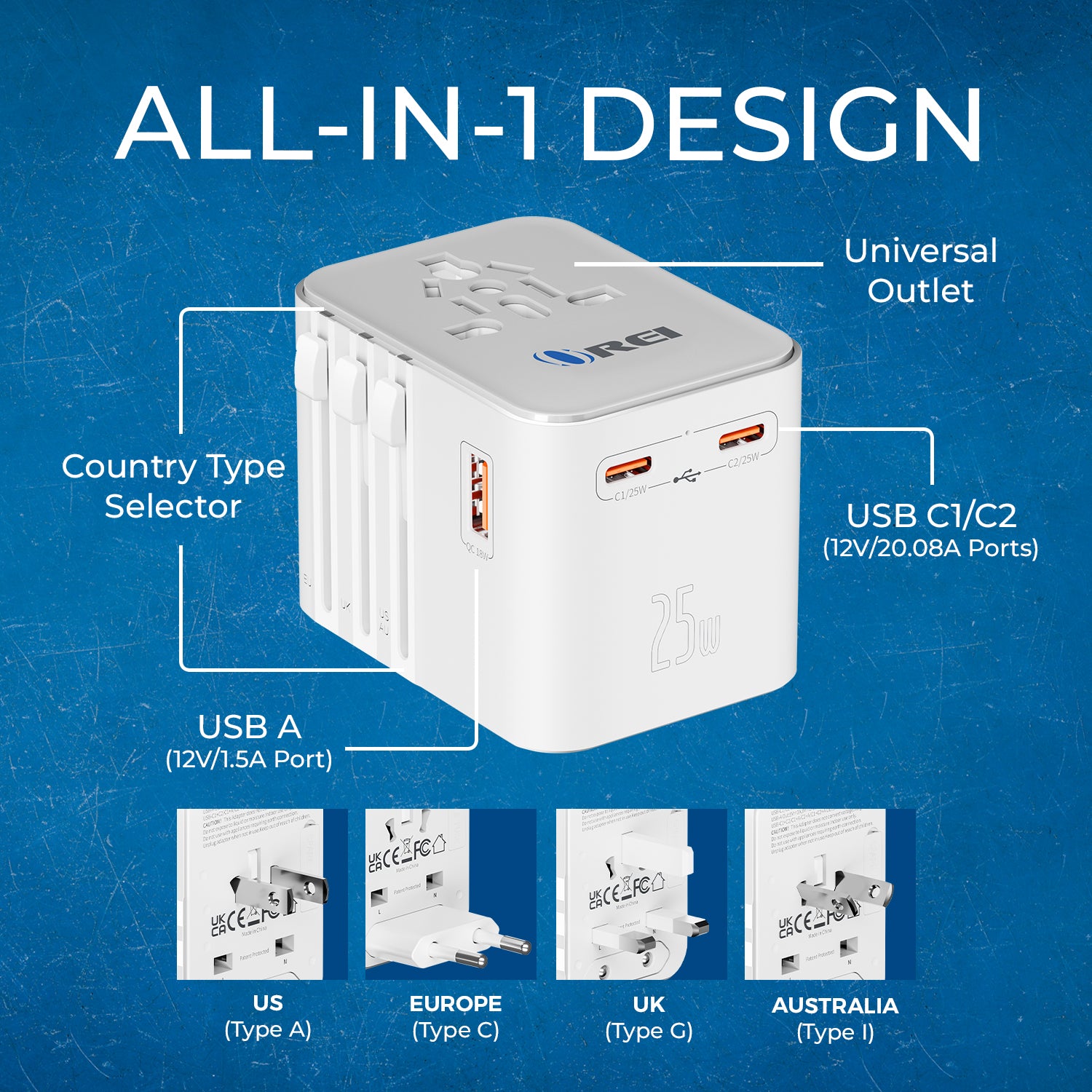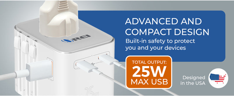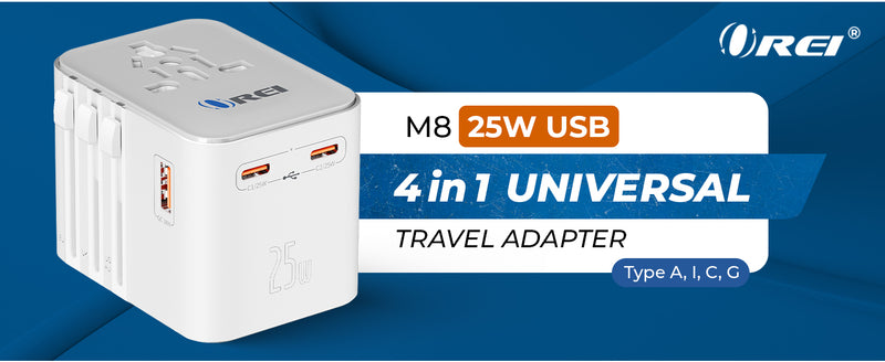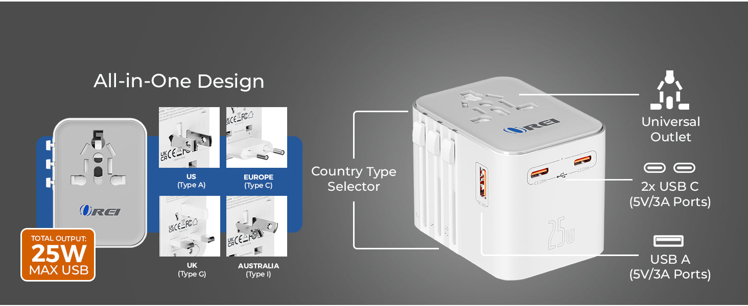 OREI 25W Universal Travel Adapter – Compact 4-in-1 Charger for Safe & Reliable Travel