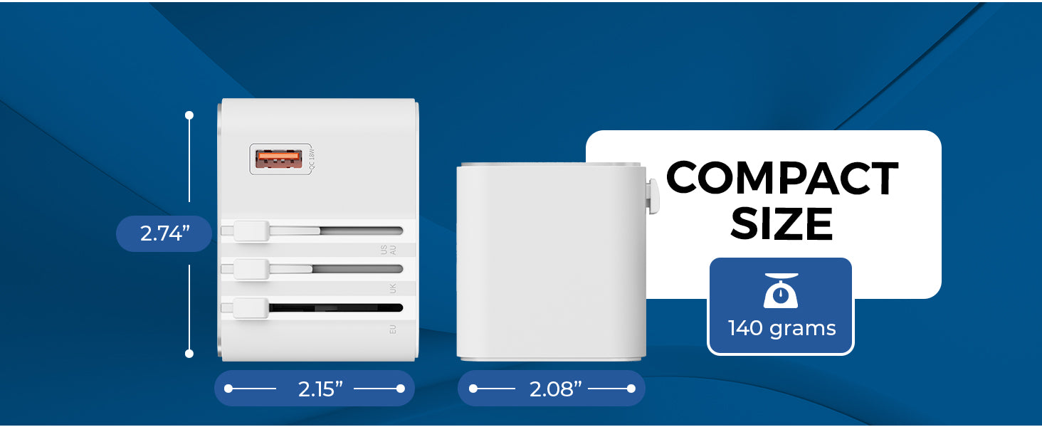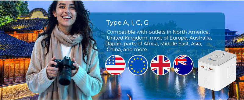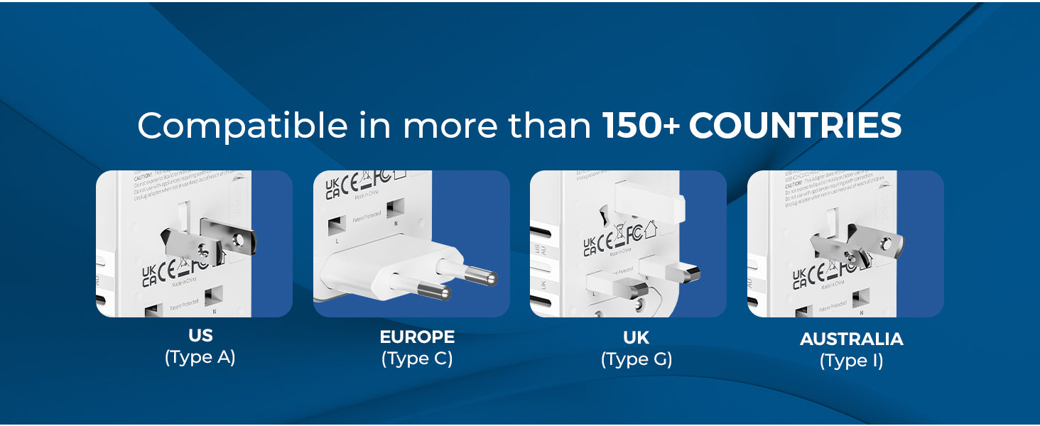 • Universal Plug Compatibility – Works with Type A, C, G, I in 150+ countries.