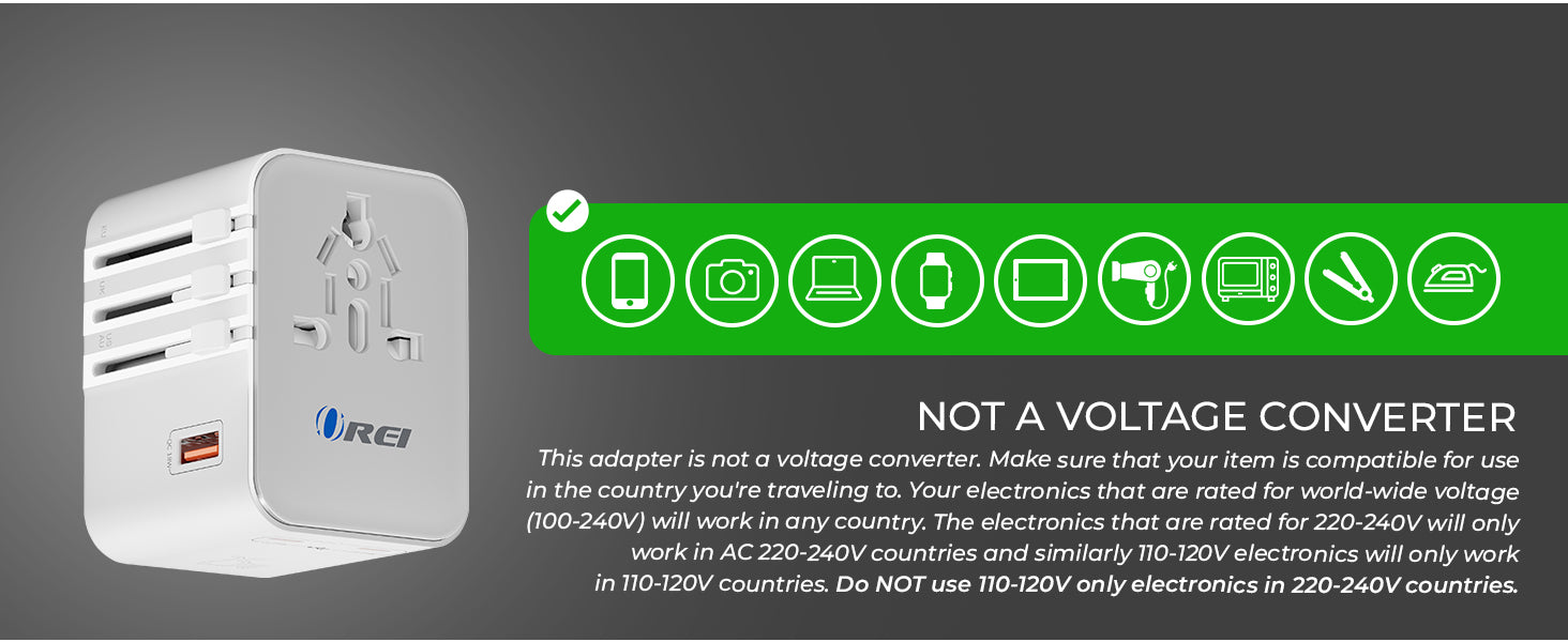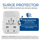 Designed with safety as a priority, the adapter includes surge protection, safety shutters, plug-lock functionality, and fuse protection to safeguard connected devices. It supports a 100–240V input range for worldwide compatibility but does not convert voltage. Devices must support the local voltage standard for safe operation. Built for long-term reliability, it is backed by extended OREI support.