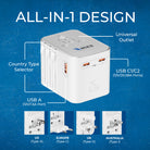 The OREI M8-25W-Grey Universal Travel Adapter is a compact 4-in-1 charging solution designed for travelers who need reliable power anywhere in the world. With 2 USB-C PD ports, 1 USB-A port, and 1 universal AC input, it allows you to charge up to 4 devices at once with ease. Delivering up to 25W output, it ensures efficient charging for smartphones, tablets, and even smaller laptops. Equipped with smart IC technology, the adapter automatically adjusts current for the fastest and safest charge. Supporting global plug types A, C, G, and I, it works seamlessly in 150+ countries with 100–240V input, making it the perfect companion for international trips.