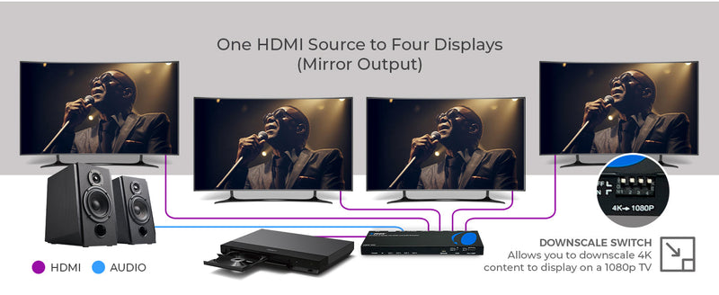 Downscale Function – Converts 4K signals to 1080p for use with non-4K displays.