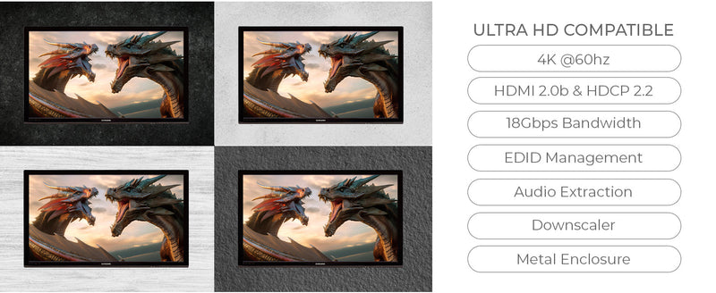 4K@60Hz 1x4 HDMI™ Splitter (Downscaler, Audio Extract)-UHDS-104A