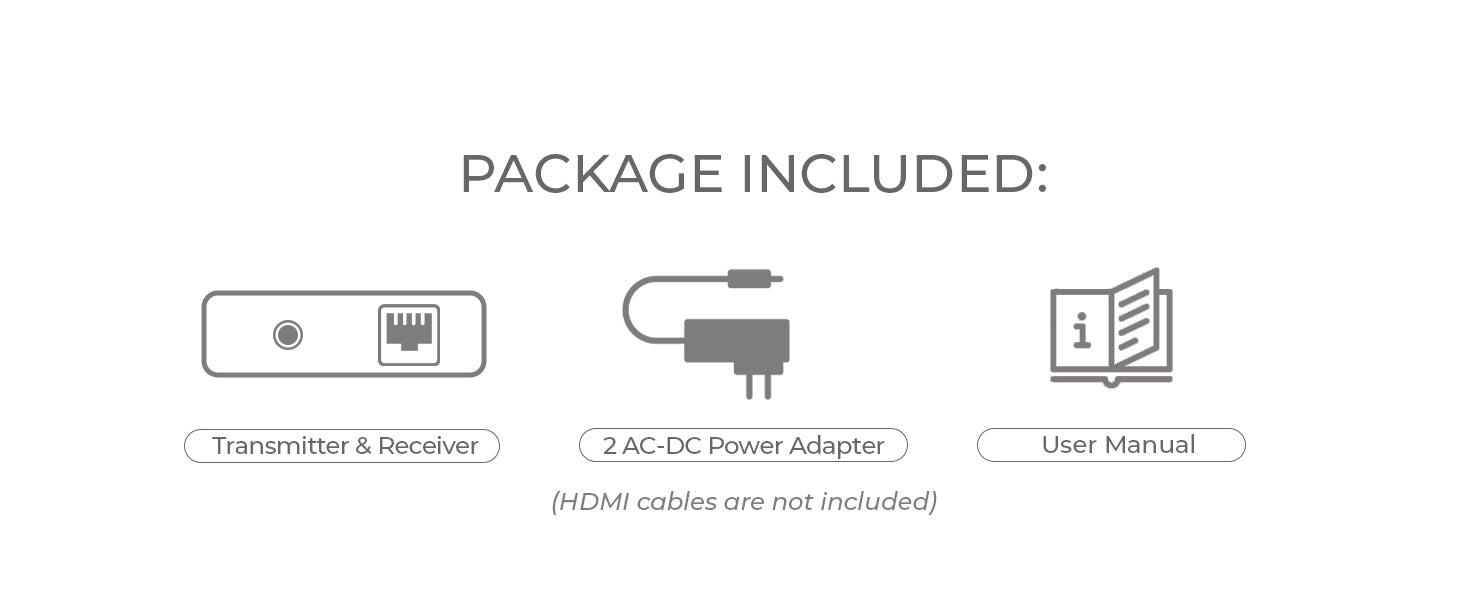 Transmitter: INPUT PORT:         1x HDMI Female port