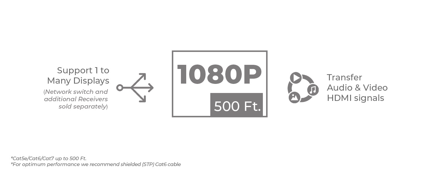 • Long-Distance Transmission – Extends HDMI signals up to 492 ft (150 m) over a single CAT5e/6 cable.