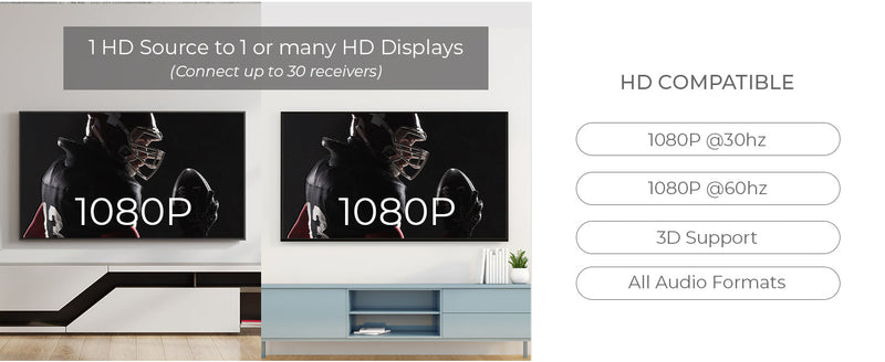 Engineered with H.265 video compression technology, this HDMI over Cat 6 system delivers high-quality visuals while minimizing bandwidth usage. The result is a stable, clear image even over extended distances, making it ideal for HDMI over Ethernet 1080p installations that demand efficiency and performance.