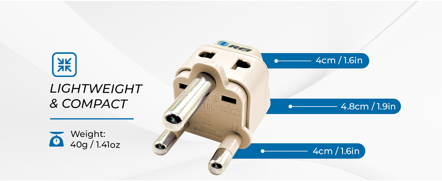 The DB-10L-1PK is designed in the US and it’s our top choice for travel adapter to use in Type M outlets. It's compatible for use with dual voltage or worldwide voltage devices .It features one socket to connect a N. American 2-prong or a 3-prong power cord to charge your devices.