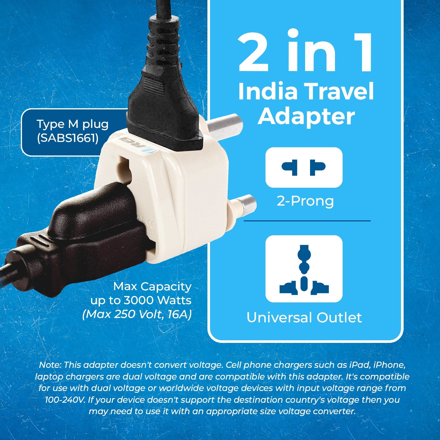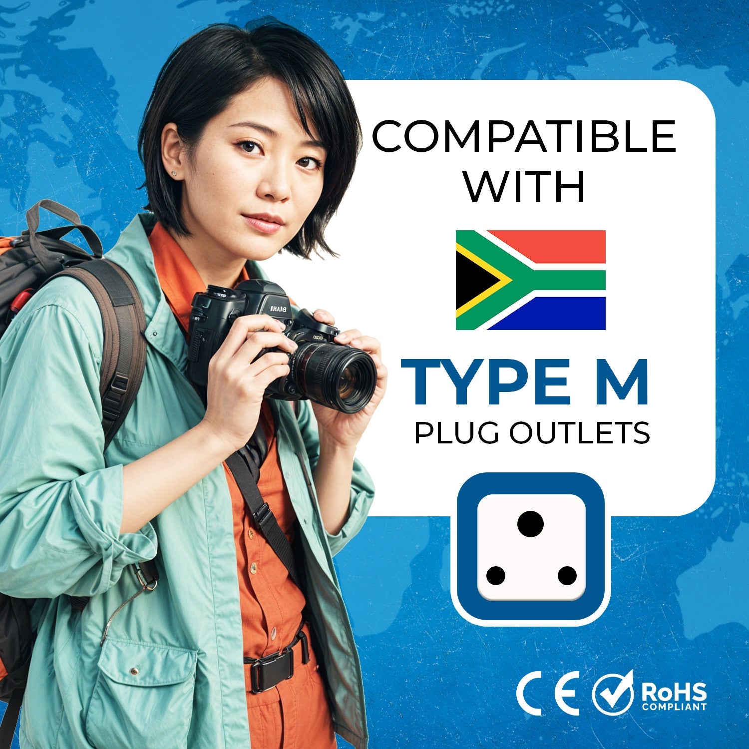 South Africa, Botswana Travel Adapter - 2 in 1 - Type M - Compact Design (DB-10L-2PK)