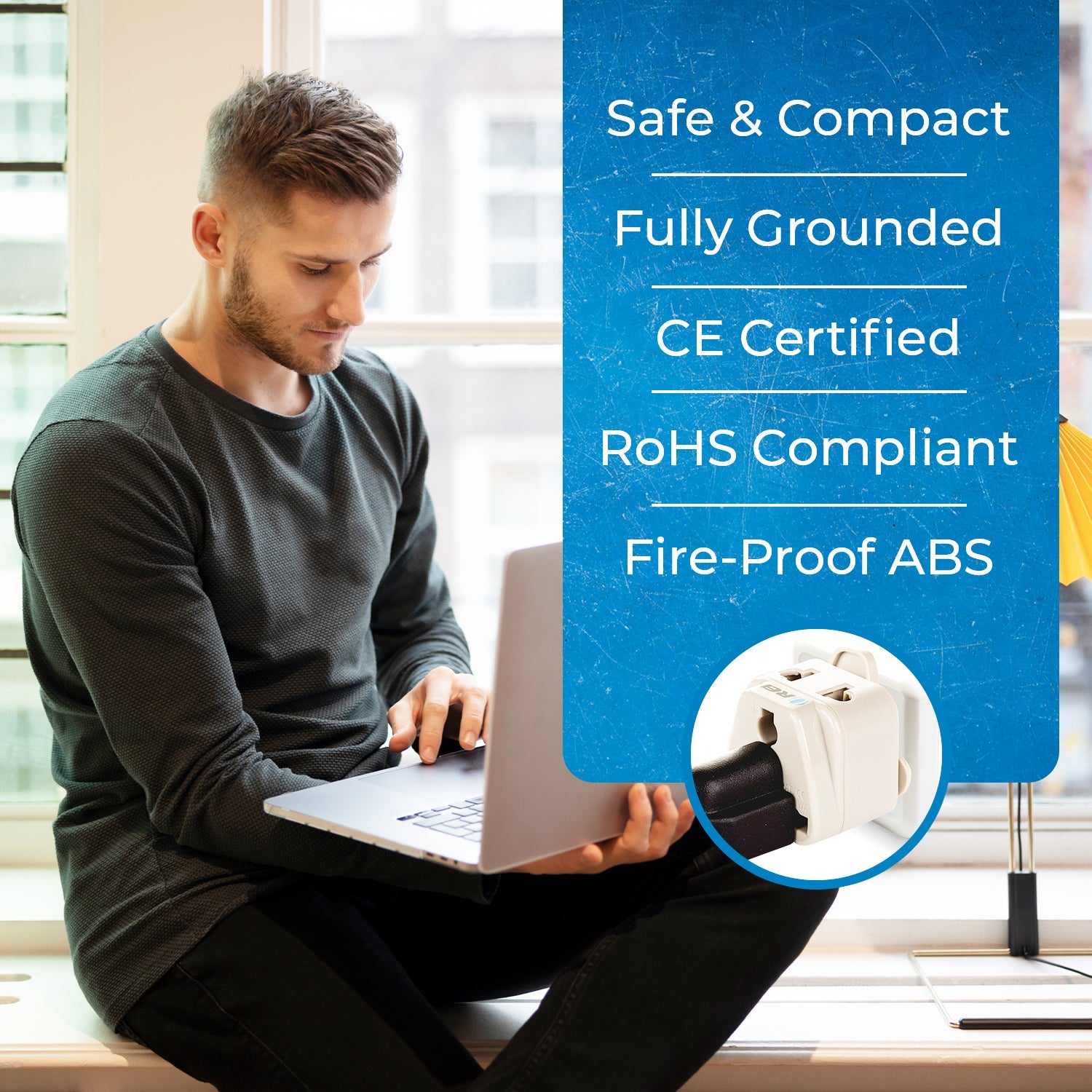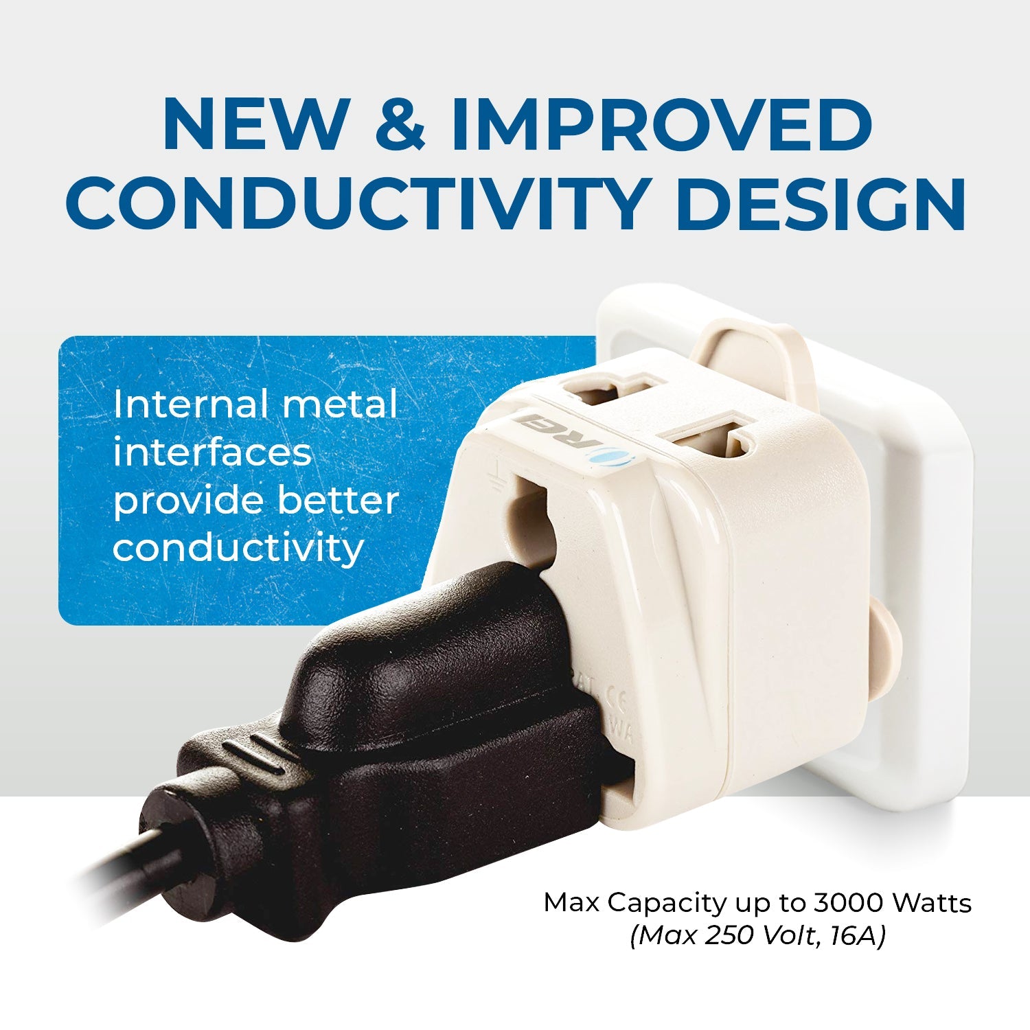 Designed with enhanced internal metal contacts, the adapter ensures stable conductivity and long-term durability. It is CE Certified and RoHS Compliant, meeting international safety and environmental standards. Please note that this adapter does not convert voltage, and connected devices must support 100–240V input when used in regions with higher voltage systems.