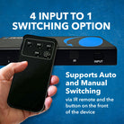 This 4x1 HDMI switch supports premium audio formats including LPCM 7.1, Dolby TrueHD, and DTS-HD Master Audio, delivering rich, multi-channel sound to complement its stunning video capabilities. Whether you're watching movies or playing games, this hdmi port switch ensures a fully immersive audio-visual experience.