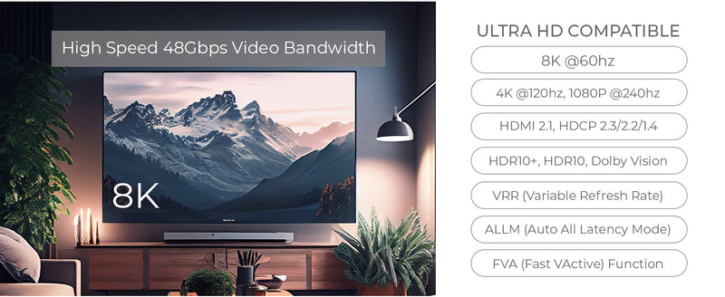 • 48Gbps Video Bandwidth – Delivers uncompressed, high-quality video and audio for a seamless experience.