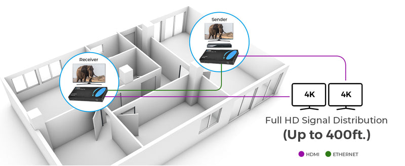 With an extended transmission range of up to 394 feet (120 meters) for 4K signals and up to 492 feet (150 meters) for 1080p content, this extender ensures consistent, high-quality performance.