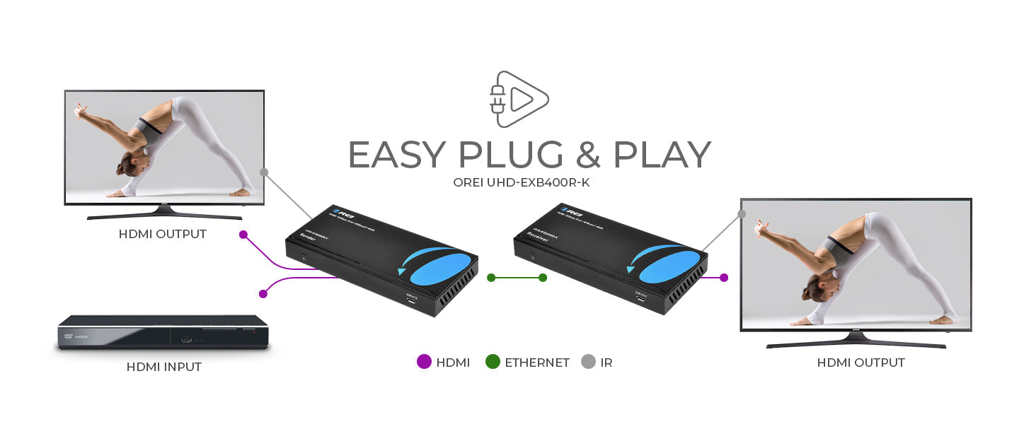 OREI UHD-EXB400R-K: 4K HDMI Extender with HDBaseT over CAT 6/7 up to 400 feet with IR control and loop out