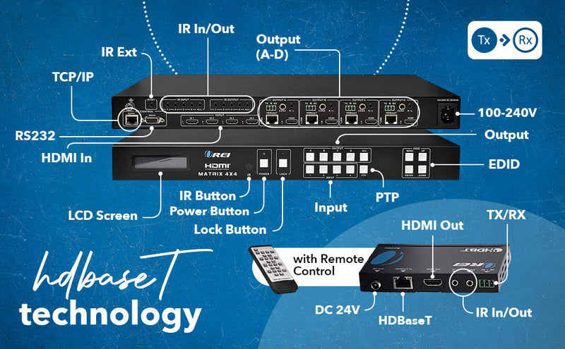 Flexible 4x4 HDMI Matrix Switching with HDBaseT Extension