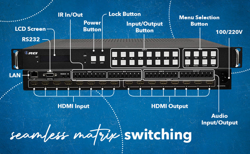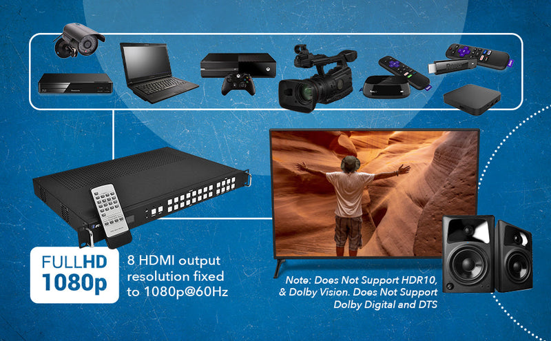 - 8×8 Seamless Matrix Switching – Instantly switch between eight HDMI sources and eight HDMI displays with zero blackout or lag.