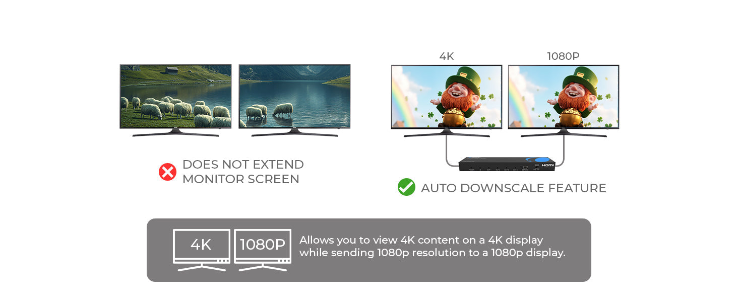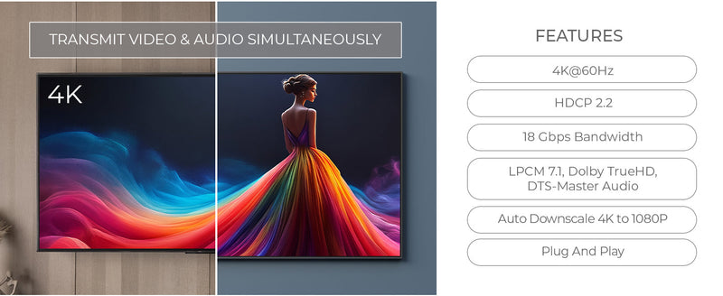 Enjoy premium sound with full support for LPCM 7.1, Dolby TrueHD, and DTS-HD Master Audio. Whether you're using it for an HDMI splitter for dual monitors or multiple TVs, this splitter ensures that your video comes with equally rich, immersive audio, perfect for home theaters and commercial setups. It's the ideal choice for anyone who values both superior sound and video.