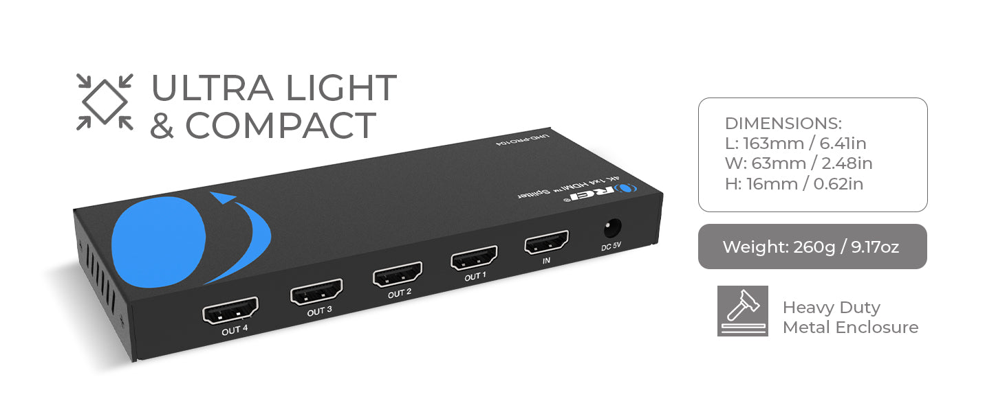 OREI UHD-PRO 104: 4K 1x4 HDMI Splitter with Auto Downscale & EDID management