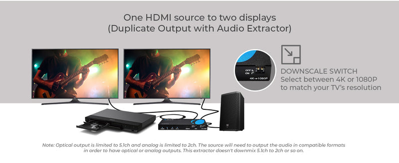 - Audio Extraction – Outputs audio through Optical and 3.5mm stereo ports for flexible connectivity.
