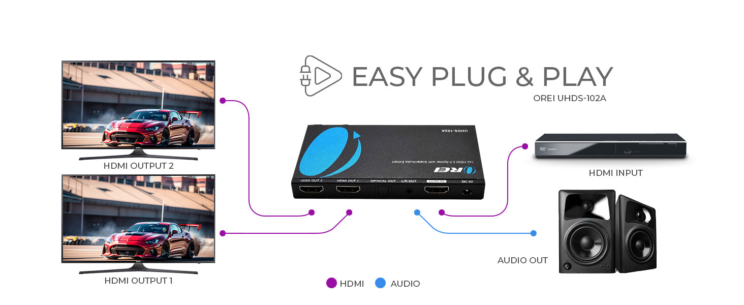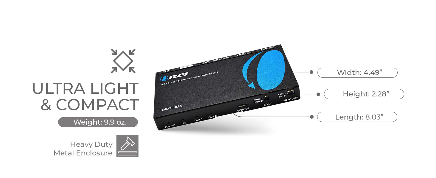 OREI 4K 1x2 HDMI Splitter With Audio Extraction, Downscaler & EDID management (UHDS-102A)
