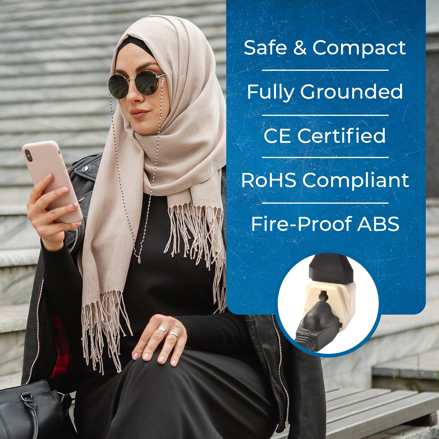 Designed with a Type G (BS-1363) grounded 3-prong output, this adapter is compatible with outlets used in the UK, UAE (Dubai), Hong Kong, Singapore, and other regions following the same standard. The rectangular pin design ensures a secure and grounded connection for dependable performance.