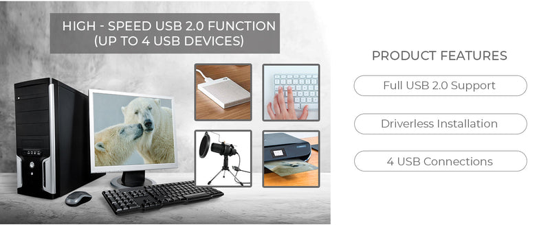 Connect up to Four USB Devices – Receiver features 4 USB 2.0 ports for printers, webcams, USB drives, and more.