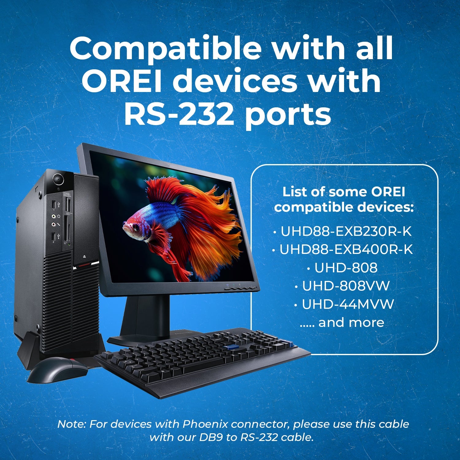 Use this cable for firmware update and also for sending RS-232 commands to the following OREI models