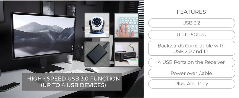 Capable of extending USB signals up to 330 feet (100 meters) over a single CAT6 or higher cable, this device offers seamless access to USB peripherals such as webcams, flash drives, and other high-bandwidth devices in remote locations.