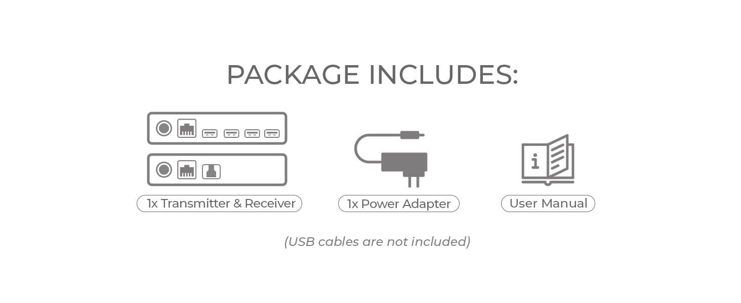 With a compact and durable design, the system includes four USB ports on the receiver—two rated at 1.5A and two at 1A—providing flexible peripheral support. Featuring Power over Cable (PoC), only one power adapter is needed at either end, streamlining installation.