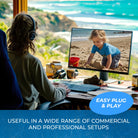 The receiver unit features four USB ports—two rated for 1.5A and two for 1A—supporting a broad range of devices including cameras, flash drives, and interactive displays. With Power over Cable (PoC), the USB over Ethernet adapter requires only one power source at either end, eliminating cable clutter and simplifying installation.