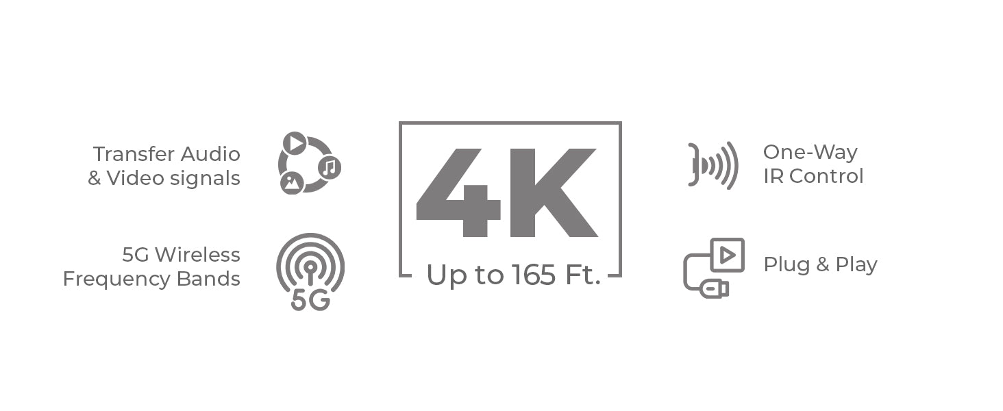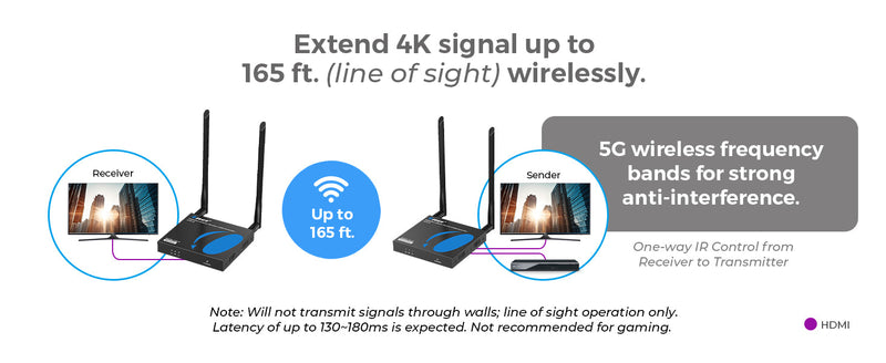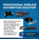 - Wireless Transmission up to 165ft (50m) – Transmits HDMI signals wirelessly with line-of-sight for flexible installation without long cables.