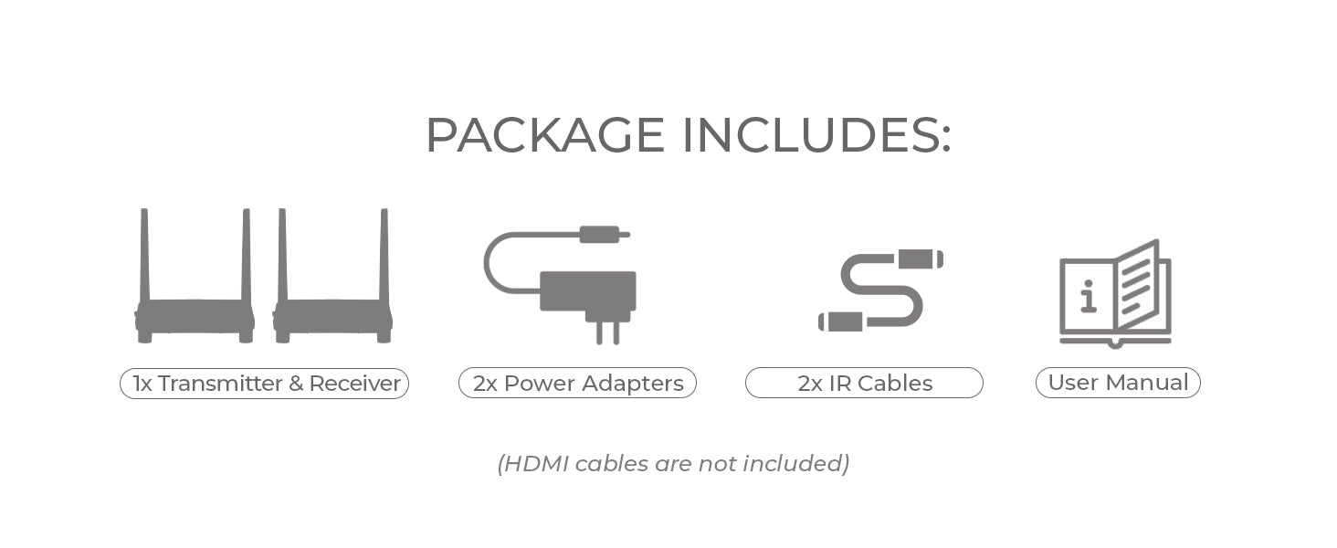 - HDMI Loop-Out on Transmitter – Connect a local display near the source device without disrupting the wireless transmission.