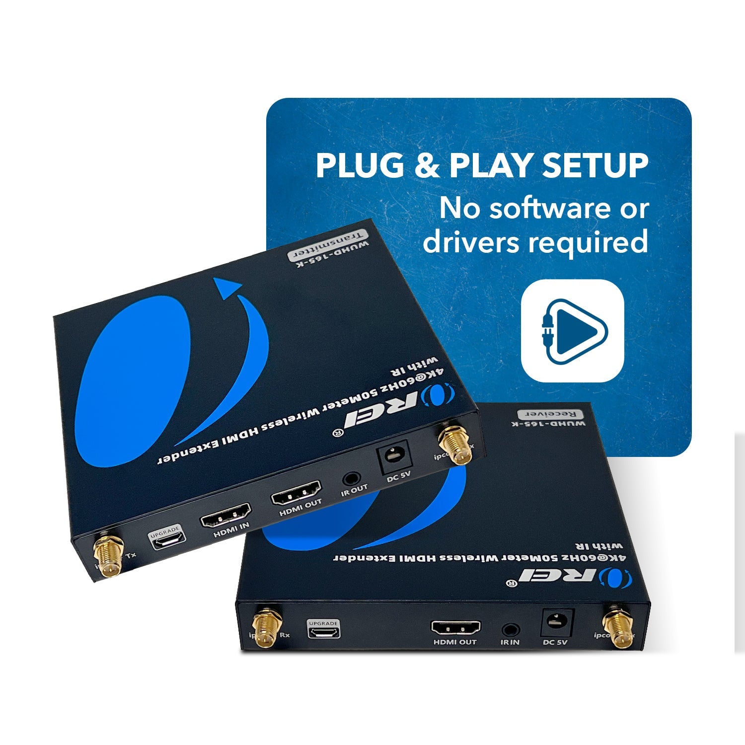 4K@60Hz Wireless HDMI Extender up to 165 feet with IR (WUHD-165-K)